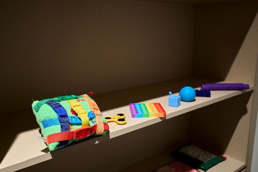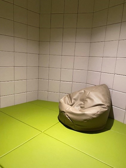 There is a calm area on level 4 of Woodlands Library that is designed for children with autism and those with sensory needs. The area is equipped with semi-enclosed spaces and padded floors to create a sanctuary for children with autism.