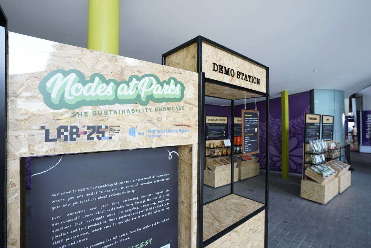 Through the Sustainability Showcase, NLB will bring a supermarket-like learning experience to parks and gardens around Singapore. Visitors can check out pop-ups resembling supermarket shelves that are filled with products, such as exercise mats made from shoe waste, and cultivated meats. These products were contributed by community partners and green entrepreneurs, such as The Plastic Project, ChopValue SG, Confetti Snacks, Insectta and students from Nanyang Polytechnic. The Sustainability Showcase aims to inspire visitors to embrace sustainability as a part of everyday life and actively co-create sustainable ideas for the future.
