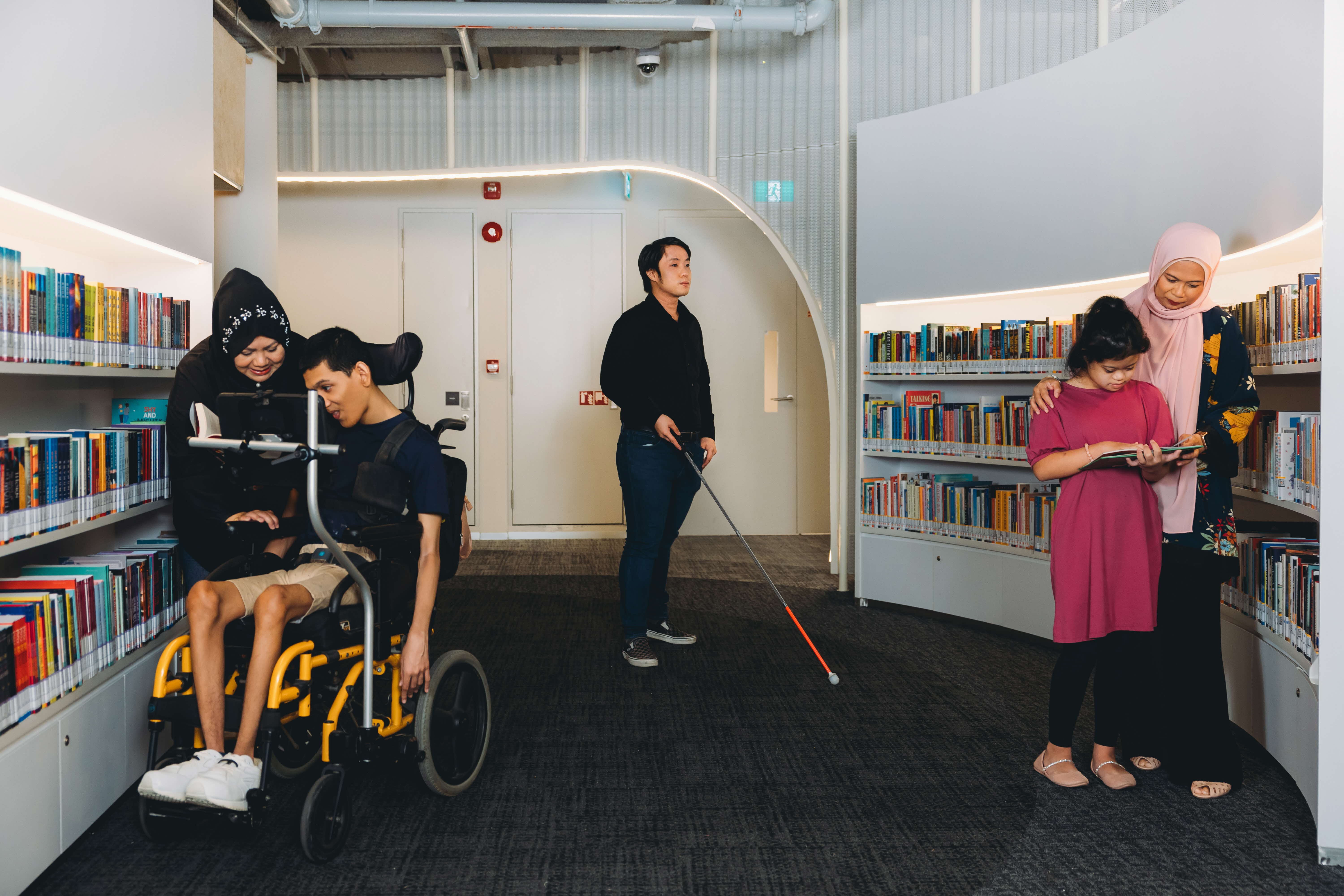 Punggol Regional Library was the first library which brings to life the National Library Board’s (NLB) LAB25, a journey of constant innovation and experimentation. The library offers a range of new accessible features to cater to PwDs, including: