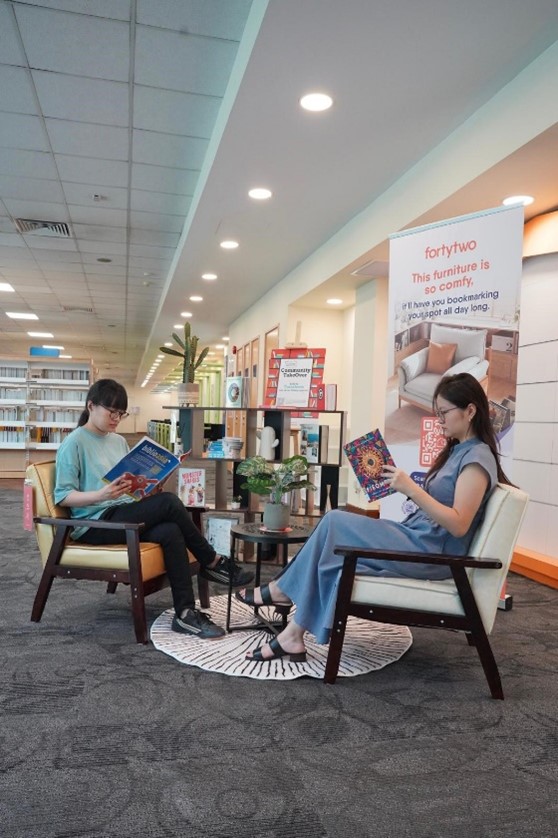 Community TakeOver opens up library spaces for more partners to showcase their products, services and share their brand stories. Through the facilitation of Enterprise Singapore, NLB collaborated with three homegrown furniture brands, FortyTwo, HomestoLife, and ipse ipsa ipsum to fit out spaces within selected public libraries with sofas, arm-chairs, coffee-tables and other locally-designed furniture for patrons to enjoy. From today, the companies’ furniture will be featured at the following libraries:
