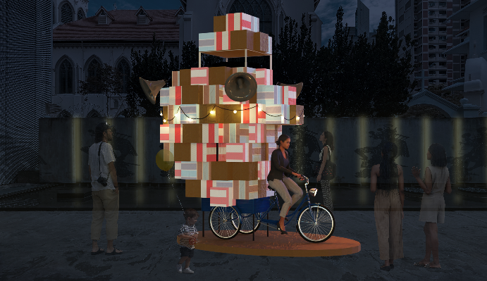 Opera in Motion: A Dynamic Tribute to Chinese Opera This interactive installation features a tricycle stacked with tarpaulin-covered boxes, inviting visitors to interact with a zoetrope showcasing the movements of opera performers. Pedalling on the tricycle activates a mesmerising light projection of an illustrated Chinese opera scene on the centre’s walls. Ambient melodies and festive lighting complete the immersive experience. Opera in Motion blends tradition with modern innovation, offering a captivating journey through the world of Chinese opera.