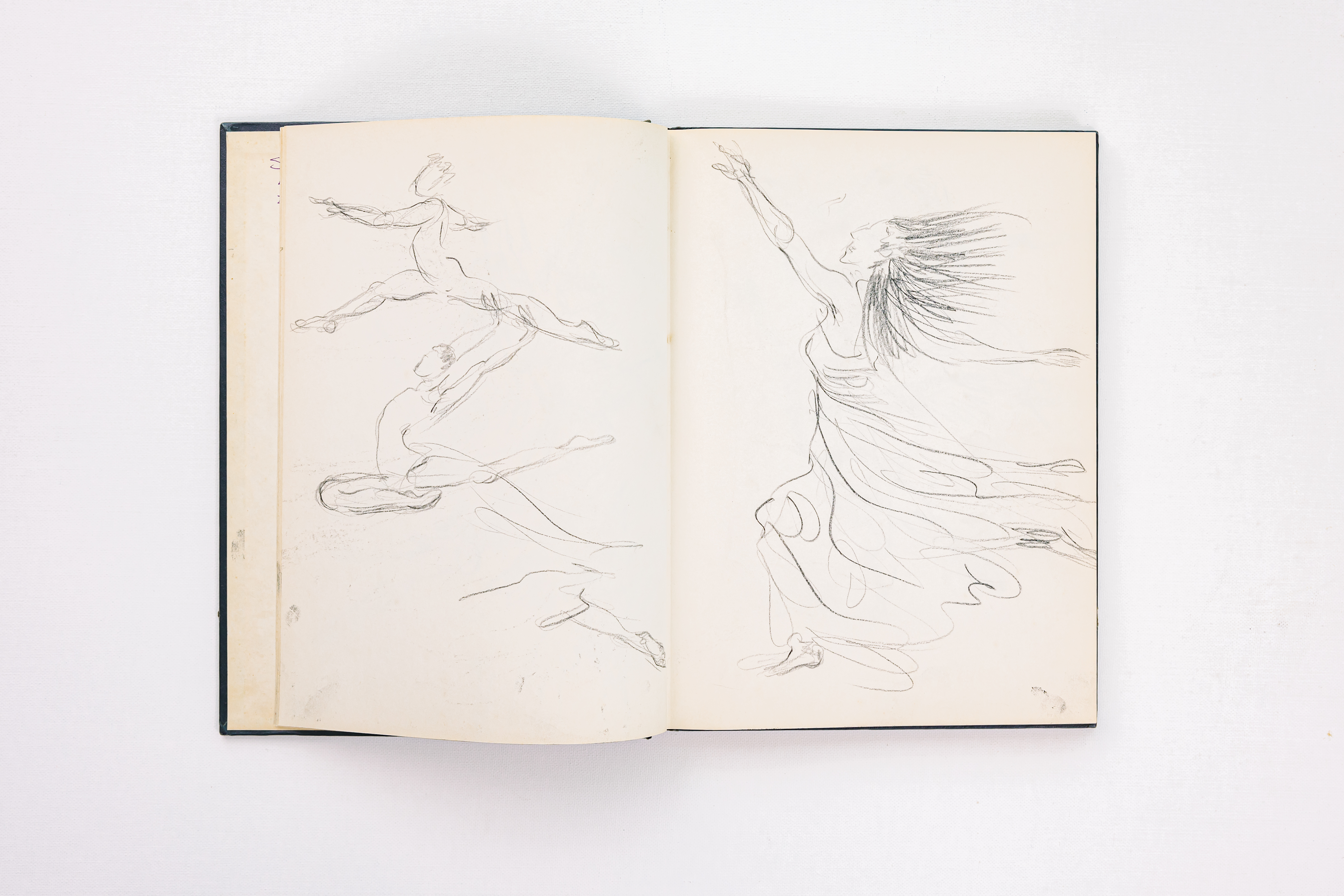 Chng’s works often contain contour line portraits and abstracted human forms in dance-like postures. In this sketchbook, we see various drafts by Chng as we follow her process of observation, rendering and artistic creation. Such materials give us a glimpse beyond completed artworks – of the otherwise unseen processes of an artist.