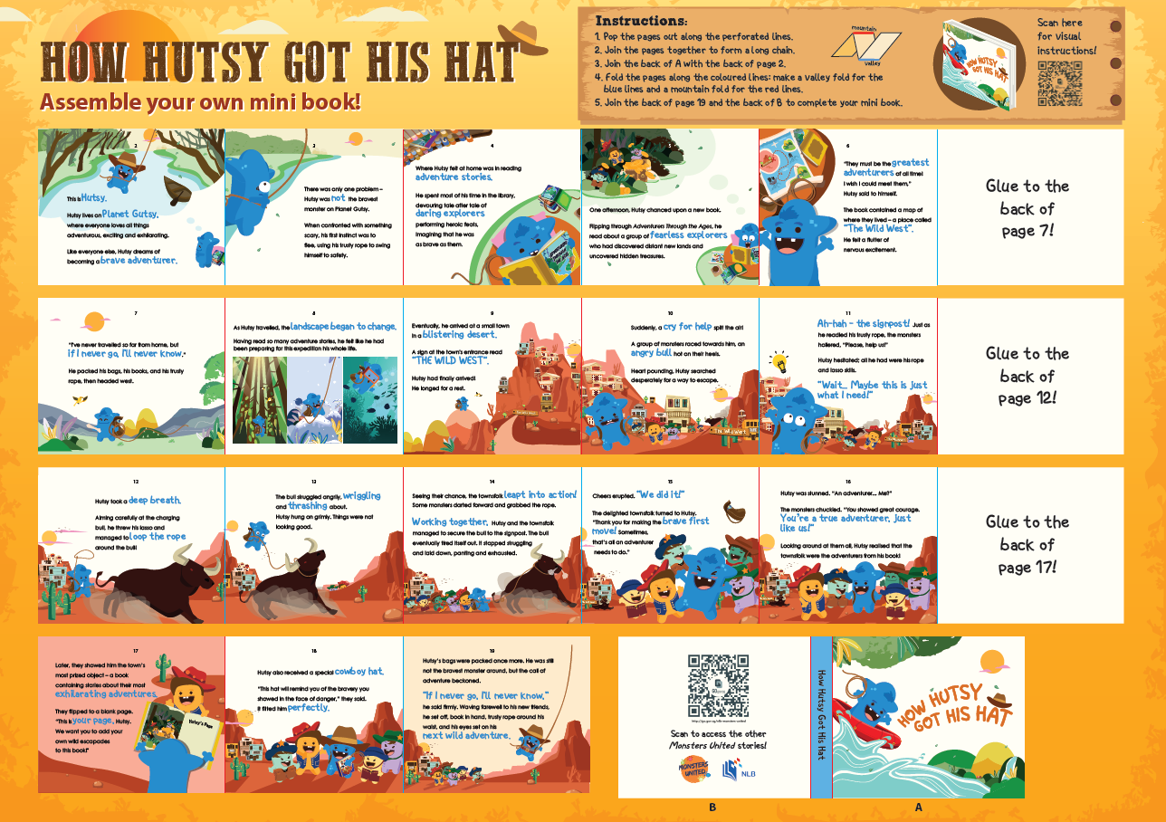 Assemble your own adorable mini version of Hutsy’s book! Simply download and print the sheet to start. Watch the instructional video below for tips on putting your mini book together.