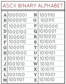 Source: Rosenthal, C. (2022, July 24). Binary Code Projects. STEAM Powered Family. Retrieved October 2, 2022, from https://www.steampoweredfamily.com/binary-code-projects/