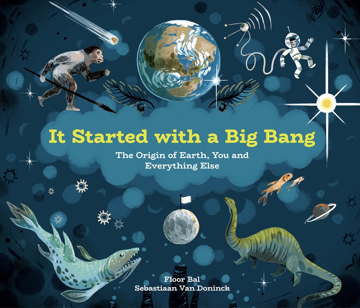 An accessible and engaging primer on the history of the universe and life on Earth. In this delightful book, kids can follow the fascinating story of how we got from the beginning of the universe to life today on the “bright blue ball floating in space” called Earth. They’ll learn about the big bang theory, how our solar system and planet were formed, how life on Earth began in the oceans and moved to land, what happened to the dinosaurs and how humans evolved from apes to build communities all over the planet … and even travel to space!