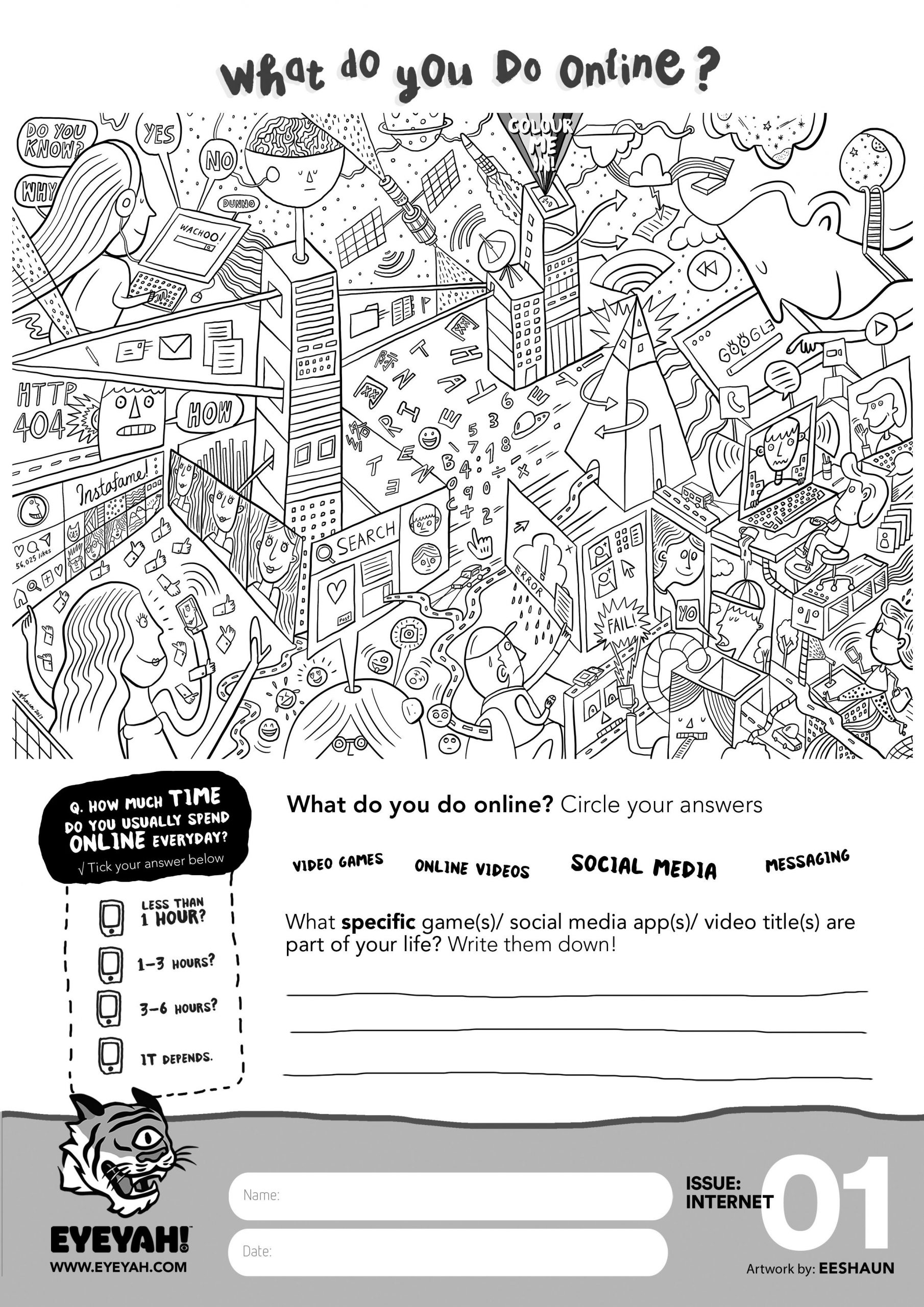 Explore the world wide web with these activity sheets from EYEYAH! Bonus: Print them out or take a screenshot with your phone to colour the black and white versions in!