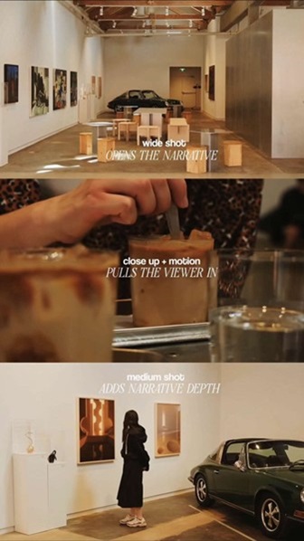 Think about how you can make each of the 3 shots visually distinct, but cohesive as a whole