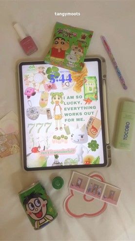 Jia. [@@tangymoots]. (2024, Nov 7). Make a Pinterest collage with me! 🍀🍡🍒 #pinterest #collage #kidcore #hobby [Video]. YouTube.