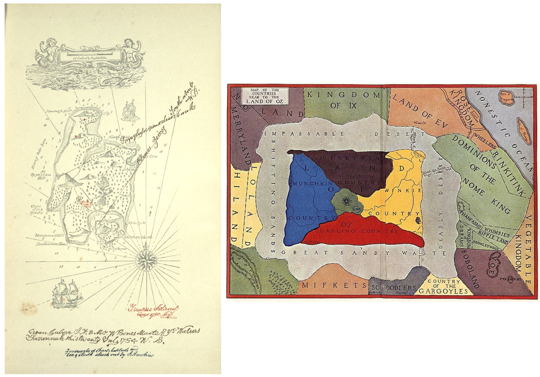 Caption: Map of Treasure Island by Robert Louis Stevenson (left); Map of Oz by L. Frank Baum (right).