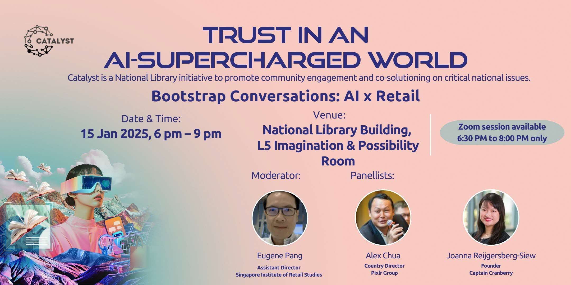 Curious about how AI is being applied in the retail sector to impact consumers like you? Join us for our AI x Retail bootstrap session on 15 Jan 2025 where you can uncover how AI is disrupting the retail landscape from product development to supply-chain systems and marketing, in conversation with industry leaders from Captain Cranberry (kitchen and lifestyle e-commerce business), Pixlr Group (creative technology and visual communications), Singapore Institute of Retail Studies, and Tokopedia (Indonesia’s largest e-commerce marketplace).