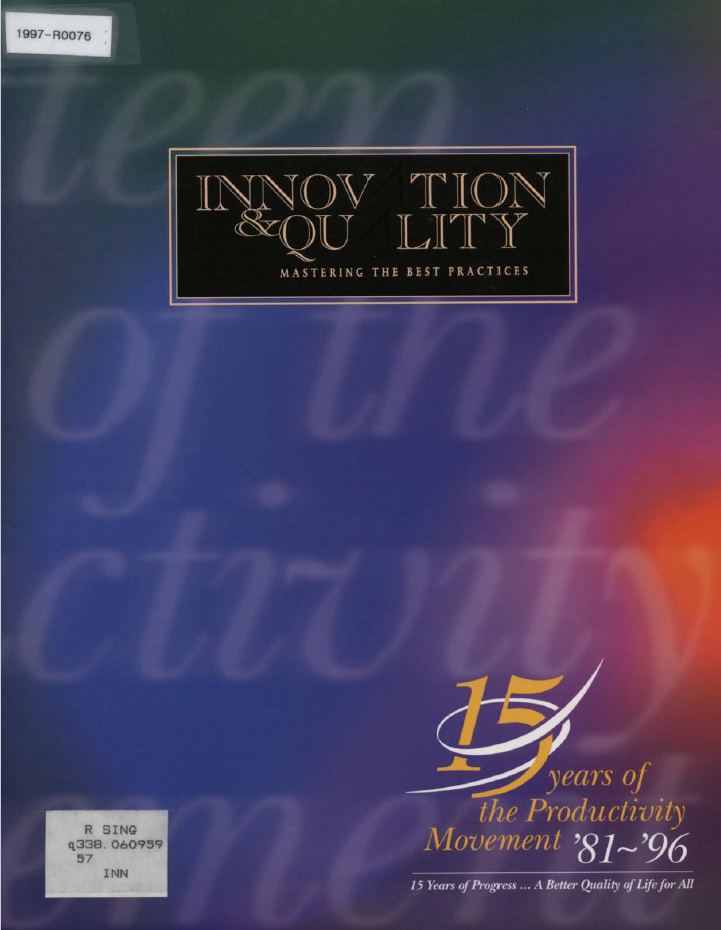 Singapore Productivity and Standards Board. (1996).Innovation & Quality: Mastering the Best Practices.Singapore: Singapore Productivity and Standards Board. (Call no.: RSING 338.06095957 INN)
