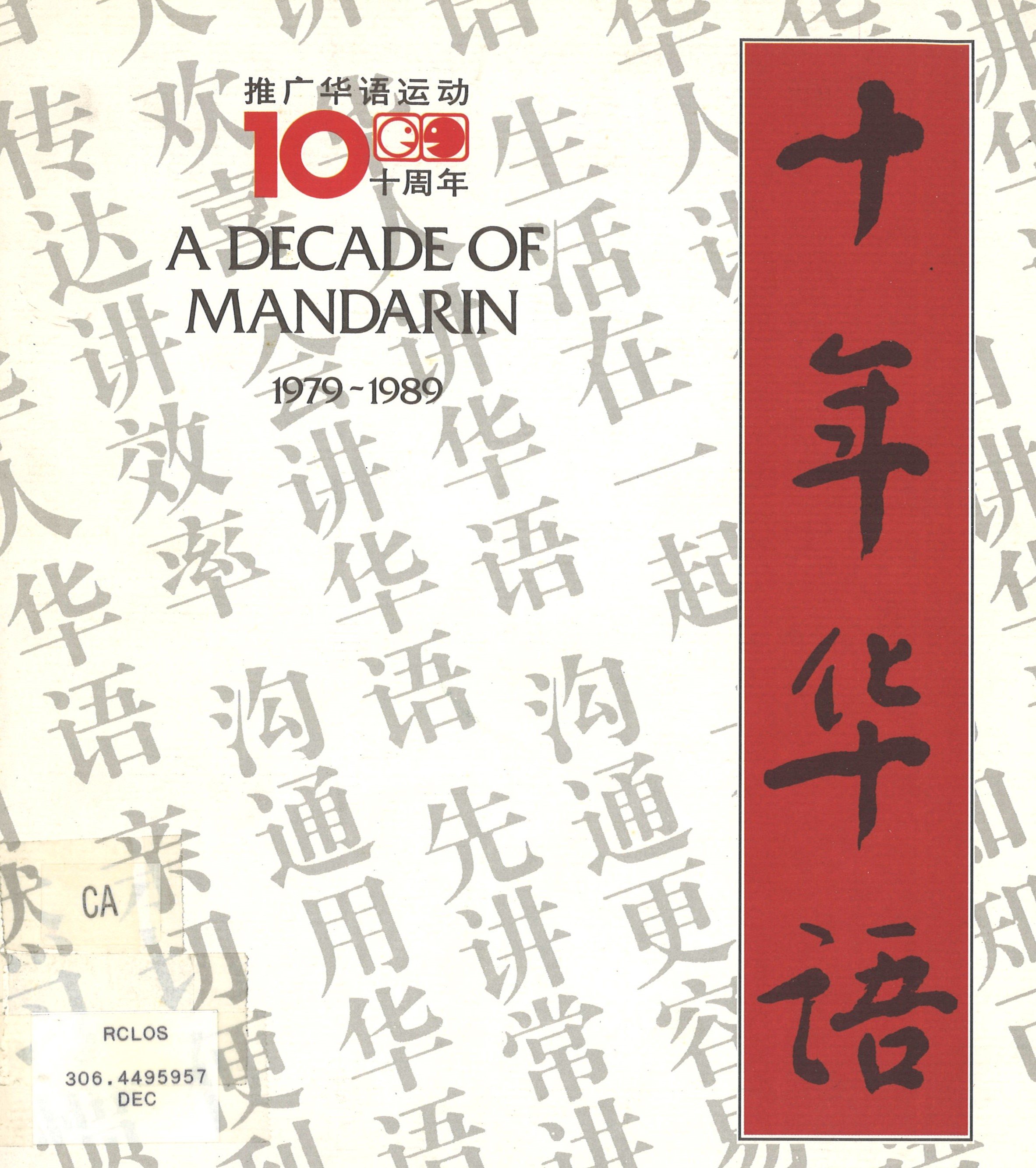 Ministry of Communications and Information. (1989). A Decade of Mandarin. Singapore: Ministry of Communications and Information. (Call no.: RCLOS 306.4495957 DEC)
