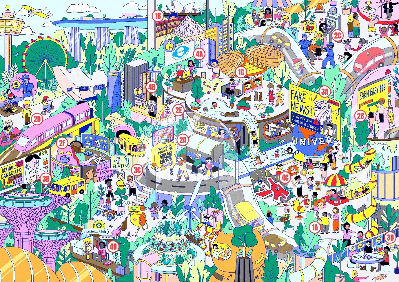 S/N Description 1a Changing or altering appearances though deepfake technology 1b Using AI manipulate image: Placing famous landmarks of the Sydney Opera House and The Louvre in Singapore next to Marina Bay Sands 1c Using deepfake technology to change appearance 2a “Too good to be true” advertisement of a “wonder drug” with a QR code to scan. If it’s too good to be true, it might be a scam! 2b Another “quick money” scheme via an online survey. If it’s too good to be true, it might be a scam! Always verify the website before sharing personal information. 2c “Companionship for credits” scam. 2d Official impersonation scam (e.g. a phishing call pretending to be a police officer demanding for money) 3a Fake news alert of a giant merlion spotted in Sentosa. 3b Fake news website headlines: School cancelled because of high temperatures. Always verify the news source. 3c Dubious misinformation about “flat earth” being spread to others. Check for two or more sources from credible sites to verify the information. 3d Be mindful of being trapped in echo chambers. When you’re only hearing the same perspectives and opinions over and over again, you may be in something called an echo chamber. 4a Use the S.U.R.E. steps to check if an information is credible before sharing information to your friends or family. 4b Check for security padlock icon on websites to ensure safe and secure online transactions. 4c Reach out to trusted adults when you encounter cyber-bullying. 4d Create strong and unique passwords to keep your online accounts safe. -