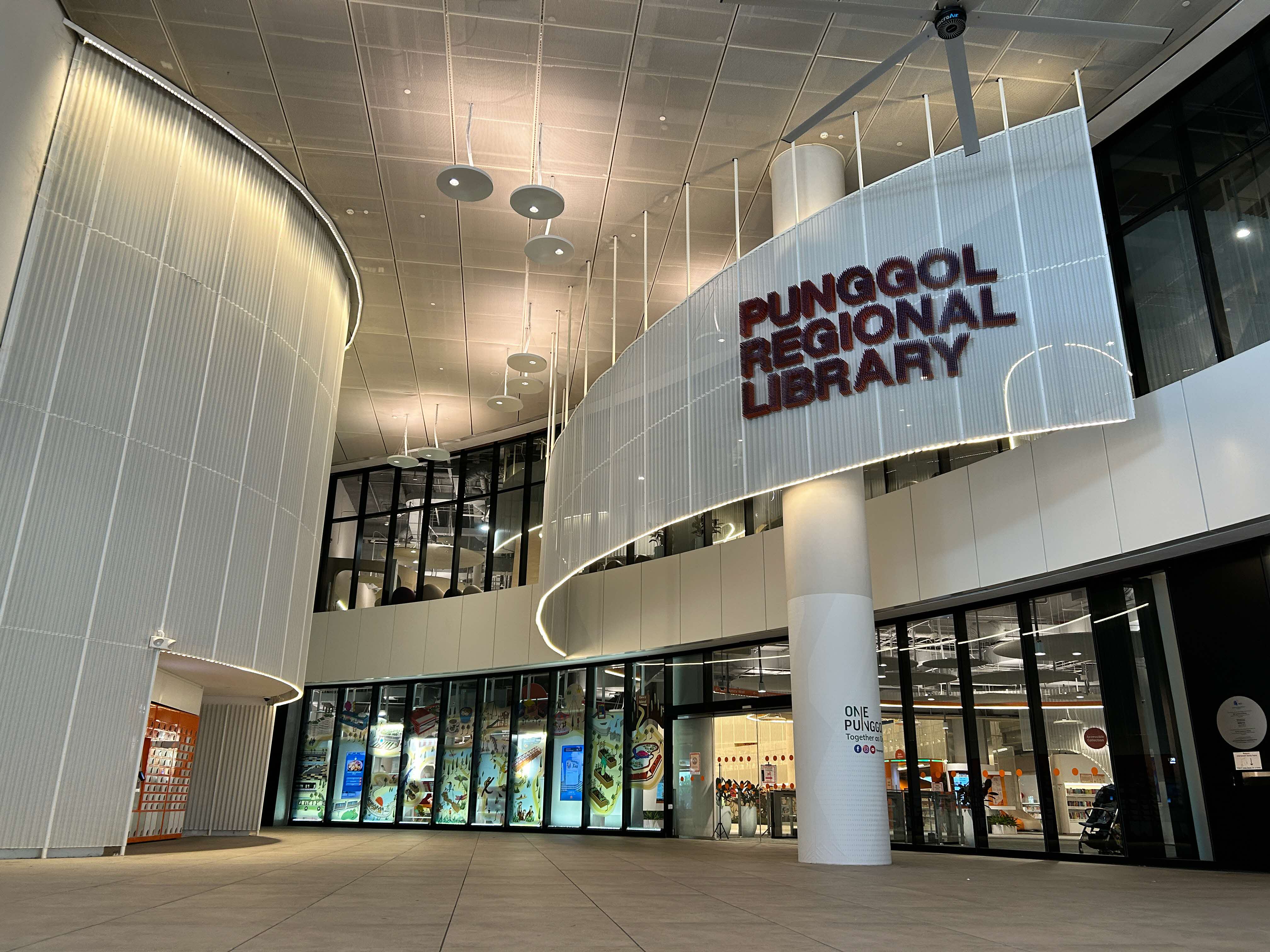 Punggol Library is the biggest public library in Singapore, measuring 12,180m2 in floor area.