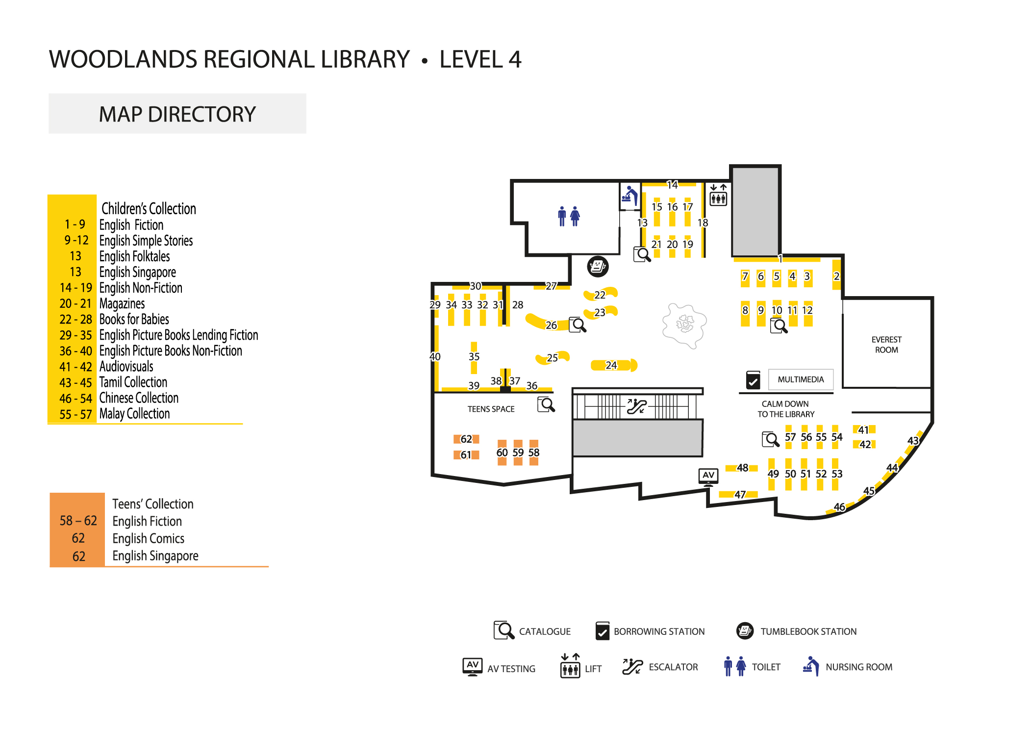 Woodlands Library was officially opened on 28 April 2001 by Dr Tony Tan, then-Deputy Prime Minister, Minister for Defence and MP, Sembawang GRC. It was Singapore’s first full-fledged regional library following the prototype regional library in Tampines. Occupying four storeys and part of a basement over a floor space of 11,100 square meters in the Woodlands Civic Centre, it is a one-stop information centre for the northern sector of Singapore.