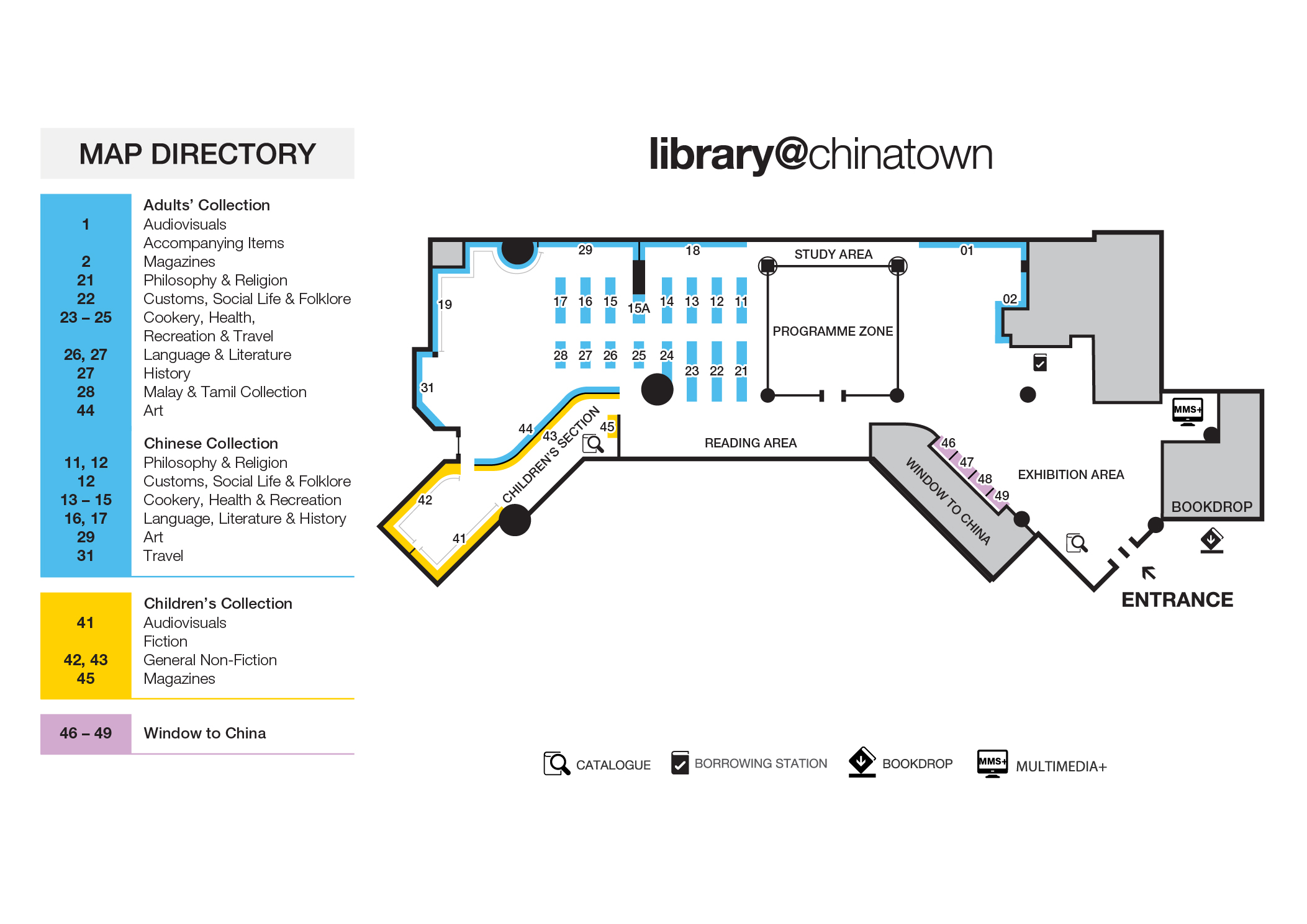 The Chinatown Library was officially opened on 31 Jan 2013 with the generous sponsorship of CP1 Pte Ltd and Kwan Im Thong Hood Cho Temple. The Temple's annual donations continue to refresh the library's collection with new materials, and offer a diverse spread of cultural, heritage and literary programmes. These programmes centre around: